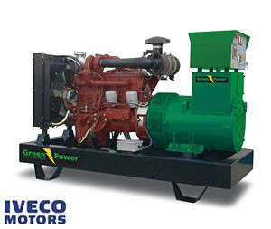 GreenPower with the water-cooled diesel engine IVECO. Equipped with stable framework, Green Power electrical panel, voltmeter, frequency meter, ampere meter, hour meter, key switch and indicator panel for the oil, battery charging and low fuel level. As an option, we also produce the silenced version.
